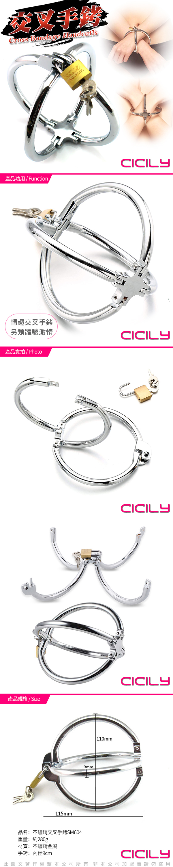 虐戀精品CICILY不鏽鋼十字交叉手銬附鎖