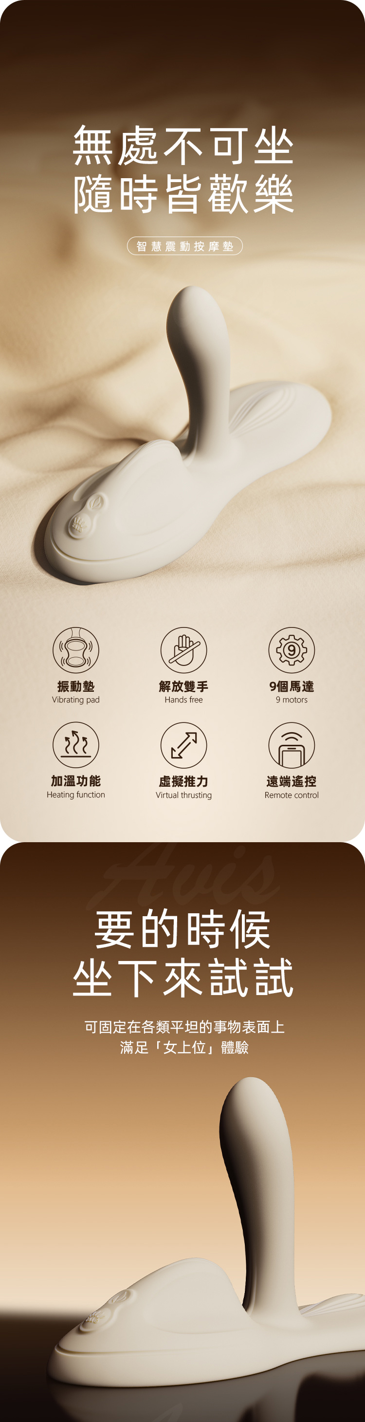 獨特的設計讓您無需雙手介入,自由調整姿勢,輕鬆體驗極致愉悅,讓探索變得更加隨心所欲。
