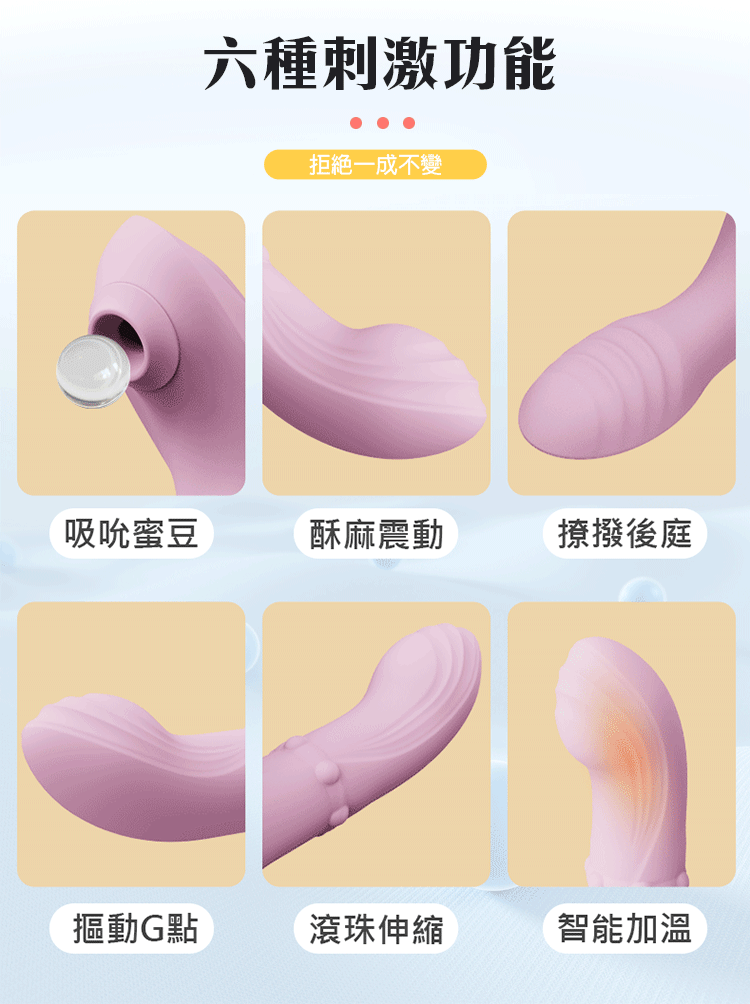 集吸吮、震動、摳震、後庭刺激、轉珠伸縮於一體,