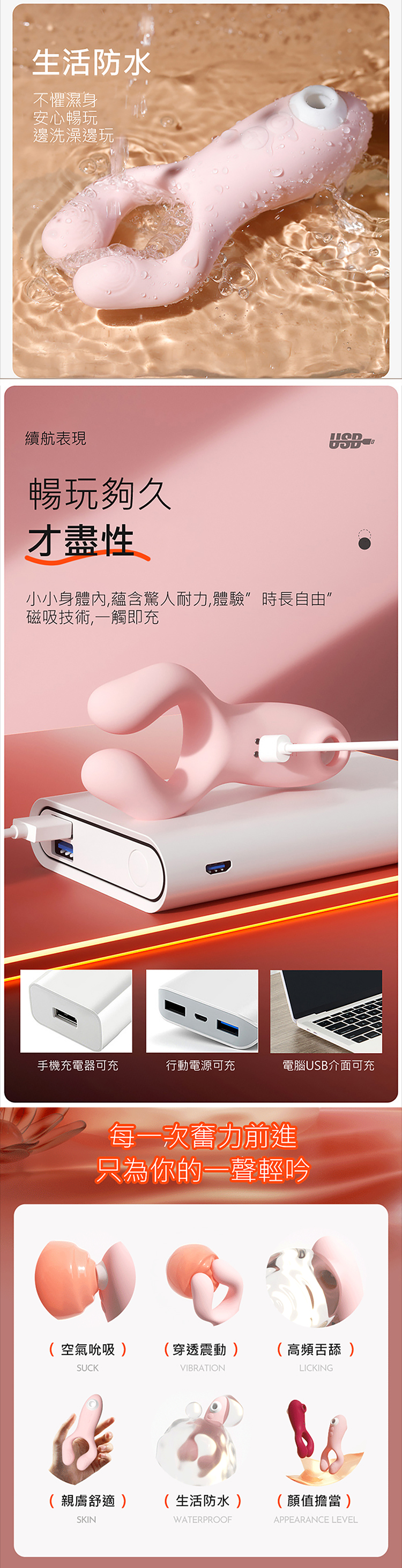 三合一設計|一機整合吸舔震,給你全方位快感