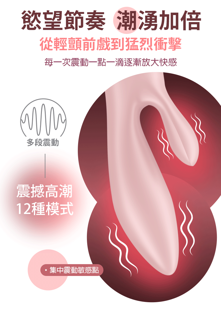 經典雙耳設計,細膩震動環抱陰蒂,與膨脹主體完美協奏。