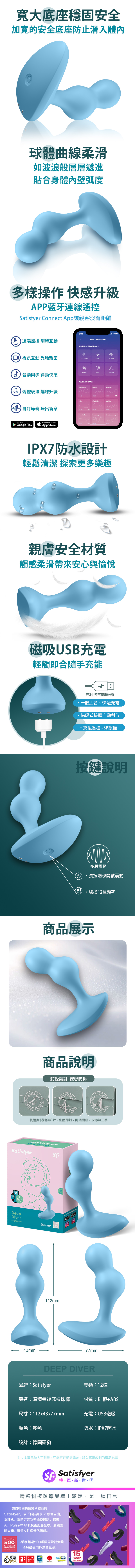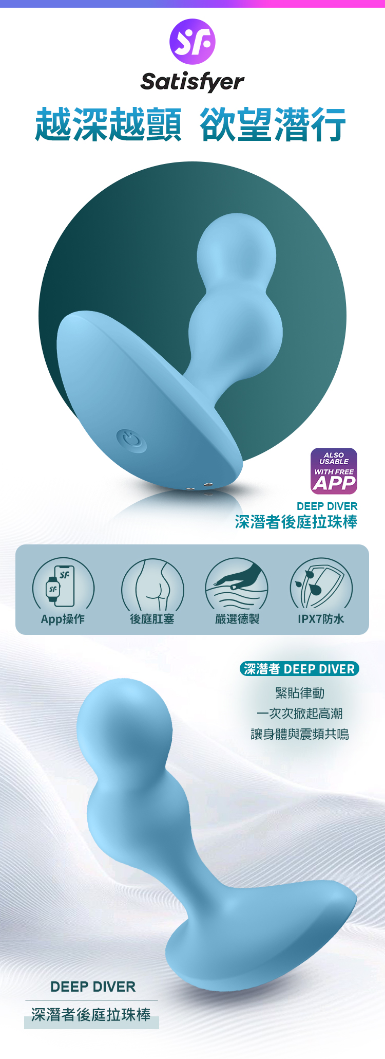 Satisfyer|Deep Diver|深潛者 後庭前列腺拉珠棒 藍