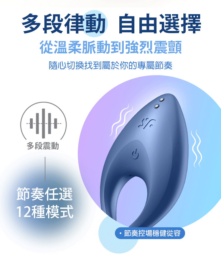 12種震動模式|從溫柔脈動到強烈震顫,自由切換節奏